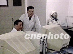 圖為科技人員在飛船發(fā)射前進(jìn)行模擬宇航員測(cè)試。