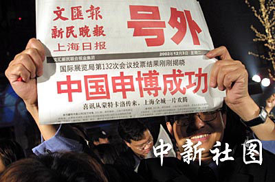 圖:中國上海獲得2010年世界博覽會主辦權(quán)