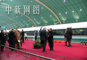 通車剪彩儀式在這條示范運營線的始發站——龍陽路站的站臺上舉行。儀式結束后,中德兩國總理登上列車一同前往終點站——上海浦東國際機場站。在體驗了風馳電掣的磁浮列車運行情形之后,兩國總理又一同參加了在上海國際新聞中心舉行的規模盛大的上海磁浮列車通車典禮,并發表熱情洋溢的講話。
