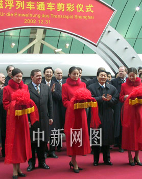 上海磁浮列車示范線今試運行 朱镕基施羅德同乘 (2002-12-31 10:58:34)