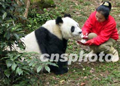 圖為飼養員為"青青"喂賀歲蛋糕。