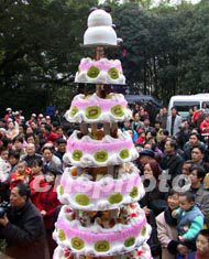 圖為當地一食品企業特意制作的巨型賀歲蛋糕。