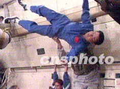 即將實現太空夢的中國第一批宇航員進行無重力訓練。作者:中新社