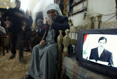 伊拉克人收看薩達(dá)姆講話