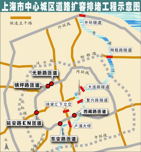 此外,西藏路、長寧路、周家嘴路等一批中心城區道路都列入了各有關區政府的擴容排堵重點實施項目,年內都將完成拓寬改建施工。鎮寧路、清真路等一批道路打通瓶頸堵頭工程將同步實施。南北高架部分地面道路、肇嘉浜路、徐家匯路部分路段的機動車專用通道改建項目也將在年內完成。