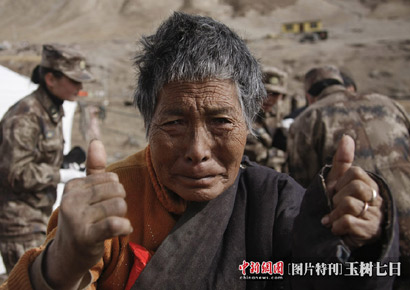 武警戰士在玉樹地震廢墟里救助被困民眾