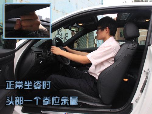 M3基于3系轎跑版打造,車身尺寸方面在原有的基礎(chǔ)上做出了更加符合跑車個(gè)性的處理。車三圍是4615mm*1804mm*1424mm,軸距為2761mm,整個(gè)尺寸都要比普通版進(jìn)口3系大一號(hào),起初因?yàn)閮砷T設(shè)計(jì)產(chǎn)生的對空間的擔(dān)心有所動(dòng)搖,測試者178CM。