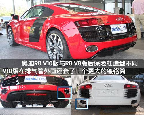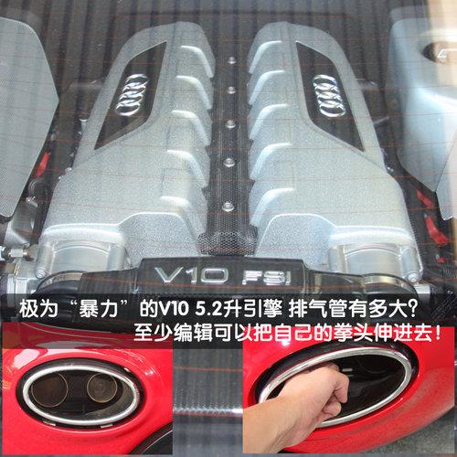 奧迪R8的駕駛艙相對靠前,而在駕駛艙之后則是巨大的引擎室——這是典型中置發動機賽車的特征,這種設計也大大優化了車身前后比例,使R8的前后重量分達到了44:56。透過R8后方透明的發動機罩,V10 5.2升FSI發動機安靜的伏臥其中。在設計師所營造的視覺效果下,人們很容易把它與賽車聯系在一起。即便在一個不了解賽車的人面前,也一定能從中看出它的與眾不同和獨一無二。