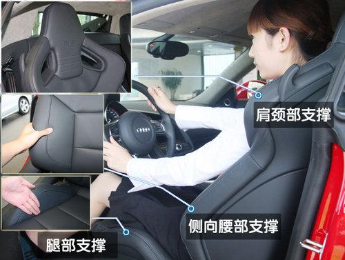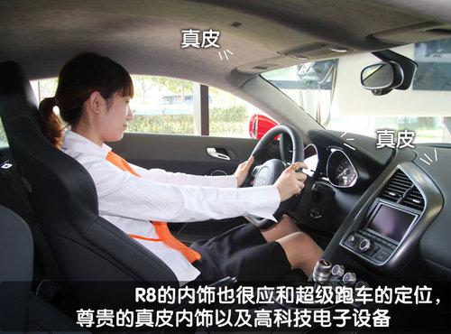 賽車座椅的標配材質是皮質/ Alcantara組合,而奧迪R8超級跑車也可裝備由quattro GmbH特別開發的桶形座椅。Bang &Olufsen(B&O)音響系統配有465瓦功率輸出和12個喇叭,確保在車內擁有優質的環繞立體聲。