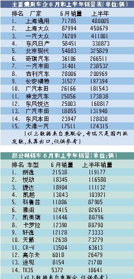 乘聯會最新統計顯示,上半年廣義乘用車國內銷售累計達631萬輛,廣義乘用車批發銷量累計達672萬輛。上海通用以半年銷售48萬輛超越2008年全年的成績,奪得了半程冠軍,但在6月,上海通用7.18萬輛的銷量低于上海大眾的8.8萬輛。