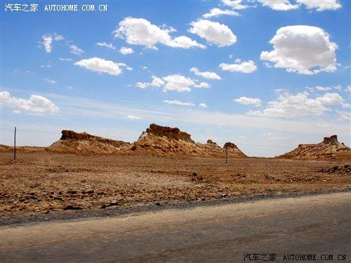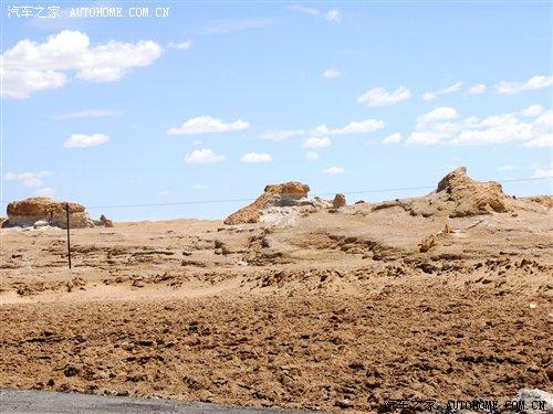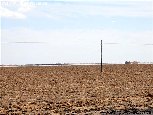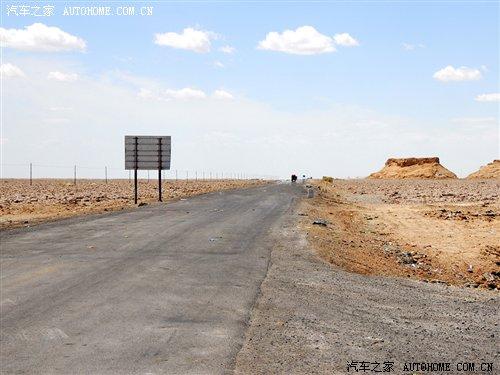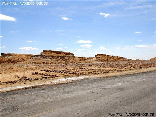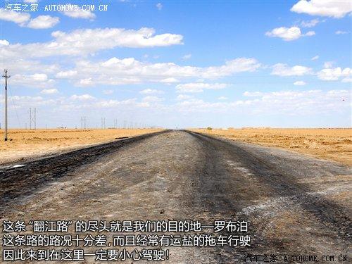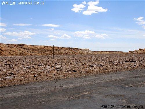 過了廣告牌以后,我們行駛的道路也發生了改變,省道已經到了盡頭,我們駛進了俗稱叫“翻江路”的柏油路面上。據當地的車主說,由于羅布泊是一個人煙稀少的地方,平時進出的都是一些好幾十噸的運鹽貨車,因此本來鋪好的柏油路已經變得破爛不堪,故有“翻江路”之稱。