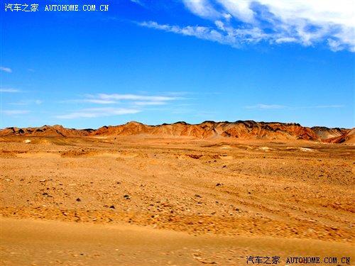 離開雅丹地貌后,我們的車隊繼續進發,大約兩個小時的車程后景色有了較大的變化,公路兩旁是被陽光曬得閃閃發光的沙漠,還有就是藍藍的天空,此時已經是下午的1點15分了,看來我們的目的地離我們不遠了。