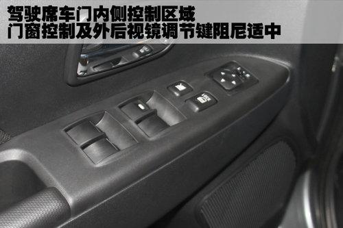 三菱ASX勁炫的駕駛席車(chē)門(mén)內(nèi)側(cè)設(shè)計(jì)了控制區(qū),可以控制車(chē)窗和外后視鏡,使用時(shí)發(fā)現(xiàn)門(mén)窗控制按鍵的阻力比較合適沒(méi)有松垮或者生硬的感覺(jué),但外后視鏡調(diào)節(jié)按鈕有些偏小,不易于操作。