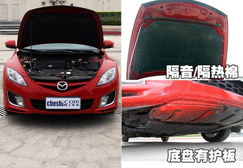 一汽馬自達睿翼轎跑的發動機艙整體被裝飾板護住,布局規整、美觀。在發動機蓋上輔以隔音材質,同時在靠近發動機后方的部分也設有隔音、隔熱層。底盤護板為一汽馬自達睿翼轎跑在日常行駛與越野時,對車輛底盤增加了一重保護。