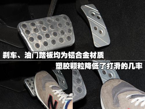 睿翼轎跑駕駛員下方的剎車和油門踏板均為鋁合金材質,且大小適中,腳踩剎車與油門的行程適中,踏板上的塑膠顆粒降低了打滑的幾率。