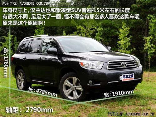 至于漢蘭達(dá)的外形,其實(shí)已沒(méi)有什么可以多說(shuō)的了,幾乎每天都能在馬路上見(jiàn)到,它的車(chē)身尺寸為4785mm*1910mm*1760mm,其實(shí)龐大的體積配合有些倔強(qiáng)的前臉多少透露出一些霸氣,車(chē)重也已逾2噸,無(wú)論它看起來(lái)多么有野性,出自凱美瑞平臺(tái)的它還是一款地地道道的城市SUV。