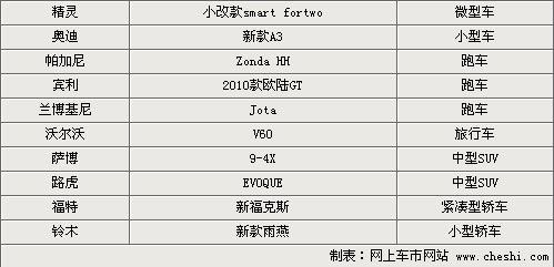 在上述表格中大部分廠家都是歐洲的豪華品牌或是相對小眾化的品牌,例如薩博和沃爾沃。這兩個品牌在中國市場的表現都不如其他歐系品牌,但是在歐洲市場中它們的銷售情況還是不錯的。2010年的巴黎車展沃爾沃將會帶來S60的旅行版車型V60,旅行款車型是歐洲消費者較為喜歡的款式能夠兼顧實用性和舒適性。另外,賓利、蘭博基尼、帕加尼也紛紛準備帶來旗下的全新跑車,贏得全球富豪們的目光。