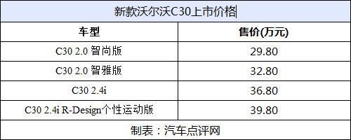 新款沃爾沃C30在車身外型上進行了一些細微調整,使其更加運動,并且車身顏色增加了動感的火焰橙顏色,而動力/傳動系統則繼續沿用沃爾沃汽車的2.0L和2.4L發動機作為動力來源。