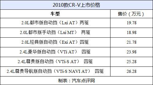 2010款本田CR-V的變化很小,主要是在外觀上有些細微的變化,其它的還有比如廠家所宣傳的噪音降低以及音響升級等,而唯一有實質性用處的配置提升只有增加了側面的安全氣囊系統。