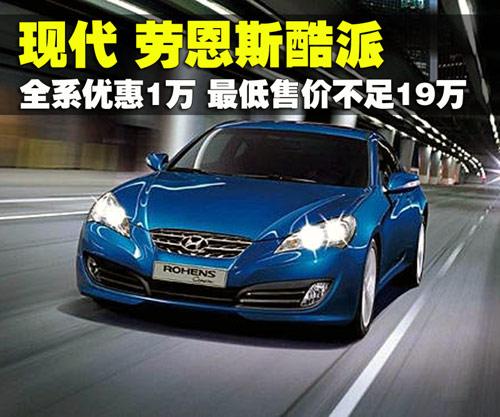 據現代4S 店銷售人員介紹,目前購買勞恩斯酷派全系車型可優惠現金1萬元,另外還贈送價值5000元的車輛裝飾,較前段時間在優惠上有所加大。入門級車型優惠后最低 售價為18.9萬元,F車方面,店內有2.0T豪華版及靚雅版現車供應,現車顏色以藍色、紅色、銀色、灰色為主。3.7L車型需要預訂,訂金為1萬元,需 等待1個月左右時間可以提到現車。如消費者有意購買,到店詳談會有更優惠的價格。北京地區各4S店由于訂單不同,各店銷售的現車顏色有所不同。
