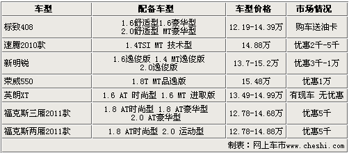售價在15萬左右的車型配備后排出風口的車型包括了標致408、速騰2010款、新明銳、榮威550、英朗XT和福克斯兩廂三廂。其中標致408和速騰2010款全系均采用此項配置,但是由于價格原因只有部分入選。除了英朗XT外,其余6款車都有現金優惠。