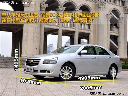 車身尺寸早就成為中國人選擇中型車的一個重要參考指標,而帝豪EC8車型的車身尺寸為長*寬*高:4905mm*1830mm*1495mm,其中車身長度為4905mm,這樣的尺寸在國內在售的中型車中是相對較大的,另外2805mm的軸距也是一個相當有誘惑力的數字。同級車中最長的車身與長軸距就為這款車在內部空間上上帶來了相對富足的空間,究竟內部空間怎樣我們下面會詳細說。