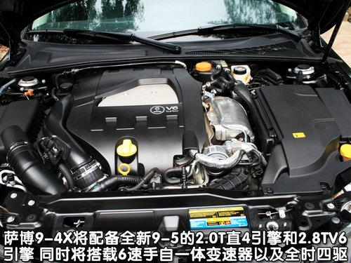薩博9-4X將配備全新薩博9-5所搭載的2.0T直4發動機與2.8TV6發動機,兩種不同的動力可以滿足不同消費者的需求。9-4X還將配備6速手自一體變速箱和全時四驅系統。