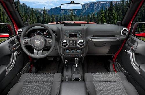在內(nèi)飾方面,新款牧馬人內(nèi)飾在選材和做工方面有所提升,相比老款車型,加入全新多功能方向盤,調(diào)整了中控臺(tái)布局,并重新設(shè)計(jì)了儀表盤。此外還增加了銀色裝飾和軟材質(zhì)門把手等。配置方面,增加了可加熱電動(dòng)外后視鏡、110伏電源插座以及USB/藍(lán)牙接口等。