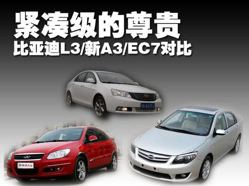 比亞迪L3和奇瑞新A3上市時間還不到半個月,而帝豪EC7推出已經有一年的時間了,這三款車型有兩款都是新產品,而且都推出了1.8L尊貴型配置產品,在價格、動力以及配置方面都有很多共同之處,直接形成競爭趨勢。我們對這三款尊貴型車型進行對比,目的是看看這三款產品在參數、動力以及配置方面究竟都有哪些過人之處。