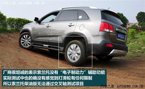 索蘭托懸掛舒適性傾向較強,使用承載式車身和多連桿后懸掛結構,充分體現了城市路況的駕駛需要,不過下擺臂不算單薄,進行簡單的穿越可以應付,但是排氣管的位置偏低,所以應該格外小心,謹防托底。