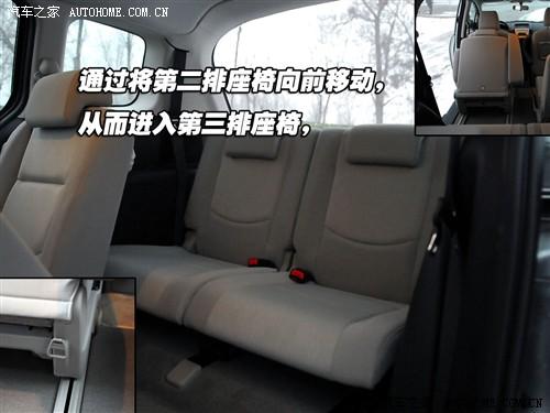 相比更多人關心的是MPV的后排乘坐舒適性以及便捷性,很明顯馬自達5第二排著重考慮乘坐兩人,兩個標準設計的座椅各自帶有扶手,坐墊較長且厚實,乘客乘坐時可以得到較好的舒適性,不過中間的座位的實用性就大大折扣了,若將其放下則成為了另一個扶手并兼顧了杯架的功能,另外,在前排座椅的的背面安裝了小桌板。