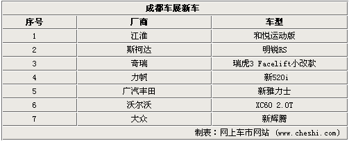 西部最具規(guī)模和影響力的2010第十三屆成都國際車展,將于9月18日-24日在成都世紀(jì)城新國際會(huì)展中心隆重舉行,主題為“綠色科技 樂駕成都”。雖然成都車展的影響力不及北京、上海、廣州,但西部尤其是四川汽車市場需求相當(dāng)旺盛,在本屆車展上將有7款不同類型的新車首發(fā)。