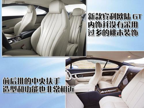 2012款賓利歐陸GT雖然中控臺仍有很多實木裝飾,但車門內側卻取消了這種設計,而是采用更加簡約的皮質材料包裹裝飾。新款車型的前后排中央扶手造型和功能設計并沒有實木變化,而且座椅設計也非常接近,都是采用了一體式頭枕,而后排則采用雙人座椅。