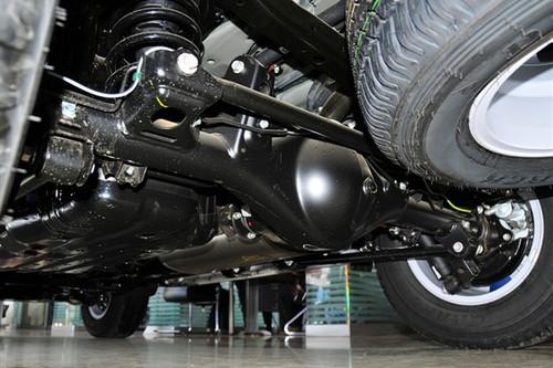 值得一提的是,新普拉多仍保留了傳統越野車采用的“非承載式車身結構+整體橋式后硬軸”,并通過進一步優化,提升了車體的扭轉剛度和彎曲剛度,加上四驅系統和中央差速器鎖定裝置,越野能力更為出色,足以輕松應對各種惡劣路況。同時新車還采用了前雙叉臂式,后四連桿式懸架結構,標配了265/65R17大尺寸輪胎。