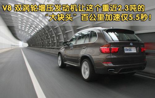 當輕觸點火開關點燃其沉睡著的8汽缸心臟,一種大排量V8發動機特有的低沉“隆隆”聲刺激著你的聽覺神經。同時也在向你傳達著一種信息:我是猛獸!推動精致但是需要適應擋位的電子排擋桿到D擋,只需輕踏油門這輛重量超過2噸的寶馬X5輕松駛上了公路。