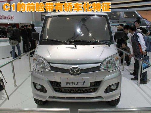 東南汽車C1的外觀設計緊跟時代潮流,整體風格吸取了轎車化的設計理念,線條簡潔流暢,更顯氣派。細看C1的車頭頗為眼熟,似乎與東南汽車熱銷的緊湊型家轎V3菱悅有幾分神似,都采用了東南汽車大鵬展翅的家族臉譜,加上時尚的晶鉆鷹眼頭燈和一體化的尾燈設計,相信能博得不少消費者的青睞。