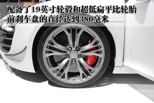 奧迪R8 GT配備的是19英寸輪轂,并且采用超寬低扁平比輪胎,可以加大輪胎對地面的摩擦力,并且提高車輛在高速行駛中的平穩性。奧迪R8 GT的前輪采用通風剎車盤,直徑能夠達到380毫米,而且紅色卡鉗看上去也非常運動。