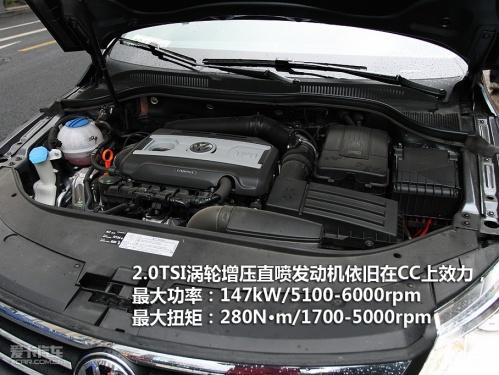 底盤和動力方面則讓人感覺有些平庸乏味,國產大眾CCD和邁騰一樣依舊采用前置前驅布局而沒有采用四驅系統,動力方面也是完全照搬了國產邁騰,EA888系列2.0T缸內直噴發動機在之前進口版上可以輸出210馬力,而此次國產之后又回歸到200馬力水平。6速雙離合DSG變速箱的采用應該說是一個進步,因為進口版使用的還是當年的6擋Tiptronic。在我們熟悉的147kw最大功率和280N.m峰值扭矩支持下,大眾CC也可以跑出7.7秒內的0-100KM/h的好成績。盡管不讓人驚詫,但和同級相比,也是可圈可點的。代步或者偶爾激情都完全足夠。在235規格輪胎輔助下,剎車也比較讓人放心。