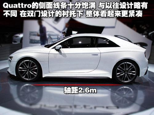 奧迪Quattro概念車在巴黎車展首發,作為奧迪展臺上一款備受矚目的車型,奧迪Quattro概念車集奧迪家族各種傳統元素于一身,并且在某些設計環節上還做出了不小的創新。奧迪Quattro概念車的誕生是為了紀念奧迪Quattro技術研發成功30周年,這款十分獨特的掀背轎跑車有望量產,不過時間暫時尚不確定。