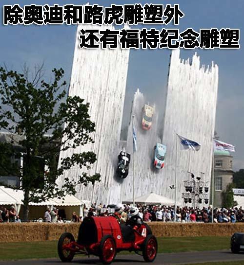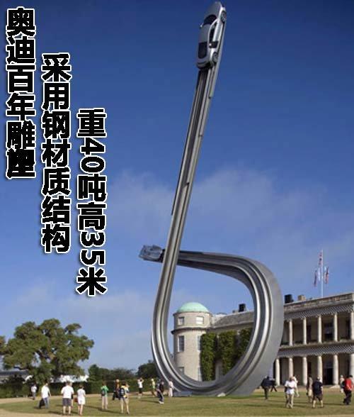 在奧迪百年慶典時,Gerry Judah就為奧迪量身打造了紀念雕塑。奧迪百年慶典雕塑座重達40多噸,高35米,采用鋼結(jié)構(gòu)雕塑,展示了兩輛汽車直沖云霄的場景,祝福奧迪公司能在下一個百年更上一層樓。雕塑上的兩輛汽車分別為1937年經(jīng)典流線賽車和R8 V10引擎運動跑車。設計師稱,這項雕塑體現(xiàn)了奧迪汽車的運動精神、業(yè)界威信和開拓勢頭。它將是今年英格蘭古德伍德速度節(jié)上的一大亮點。