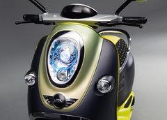 事實上MINI品牌針對這款電動摩托車推出了三個定妝版的樣車,不過MINI品牌方面尚未公布這些車輛的詳細信息。不過這三個不同車身顏色的電動摩托車倒是有著自己獨特的含義:熒光黃車色代表Mini目前在許多國家正在進行的電動車租賃計劃;深色金屬綠為Mini在British Racing Green賽事的傳統圖裝;摩德風格灰是為了紀念1979年發行的電影與同名專輯《Quadrophenia》(四重人格)。