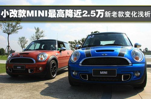 2011款MINI并非全新?lián)Q代車型,為中期改款。主要的配置變化體現(xiàn)在外形設(shè)計(jì)、動力系統(tǒng)以及內(nèi)飾三大方面。售價(jià)22.5萬元的MINI ONE與老款的MINI Cheer相比在發(fā)動機(jī)功率方面下降了16KW,而新款MINICooper s發(fā)動機(jī)功率則提升7KW換來的是快0.1秒的百公里加速時(shí)間。在配置方面,新款車型于老款車型相比略有提升,但是并不明顯,主要變化還是體現(xiàn)在設(shè)計(jì)方面 。