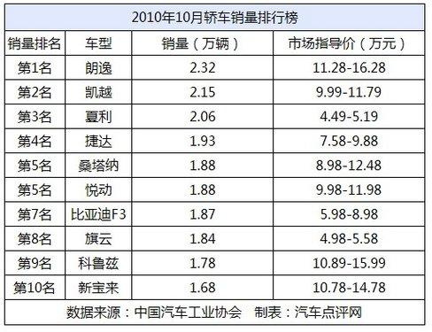 畢竟總體還是增長的,更讓人欣喜的是,自主品牌在銷量排行前十名中占了三個席位;朗逸霸主的地位依舊穩固,凱越、捷達、桑塔納則維持著“新三樣”的銷售成績,夏利突破兩萬輛躋身前三還是第一次,有些讓人出乎意料。