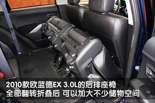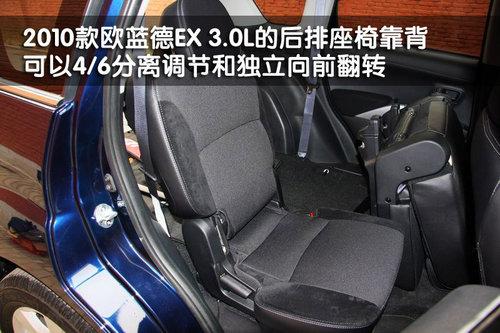 歐藍德EX 3.0L車型的后排座椅既可向前翻轉,拓展出更多的后行李箱空間,同時也可靠背放倒,并且4/6按比例分離,在有后排乘員的情況下,仍能放置長尺寸的物品。