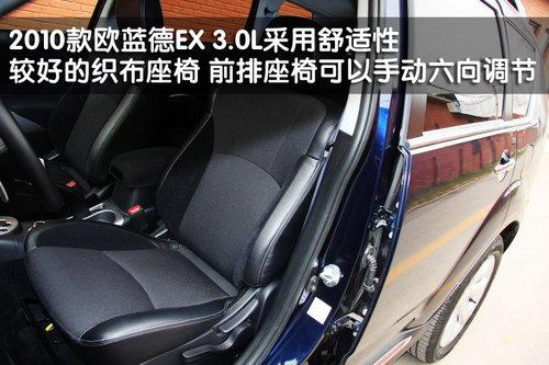 三菱2010款歐藍德EX 3.0L的全車座椅都采用絨布材料,但舒適性非常好,座椅兩側對身體的包裹性也比較到位。這款新車的前排座椅采用6向手動調節模式,而且頭枕也可以高低調節。