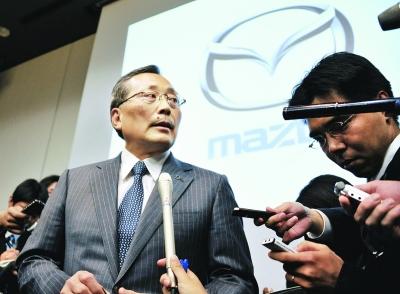 圖為日本馬自達汽車公司總裁山田憲昭18日在東京出席記者招待會的情形。該公司當天宣布,美國福特汽車公司對其持股比例將從11%降至3.5%,這將使前者喪失馬自達最大股東身份。據悉,福特自1979年以來一直是馬自達的最大股東,一度擁有馬自達超過1/3的股份,自2008年全球金融危機爆發以來開始減持馬自達股份。