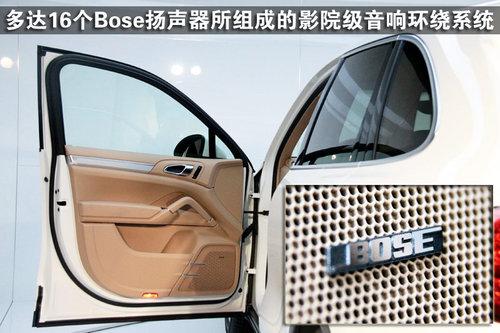 混動卡宴除了在性能上的出色表現以外,整車在舒適娛樂系統上也可謂達到了至上水準,16個Bose揚聲器所組成的環繞音響系統,可以讓你感受到影院般的聽覺感受。