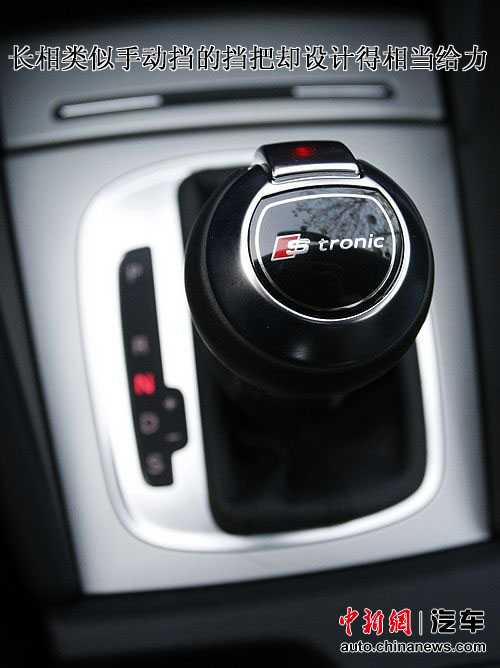 S tronic 7速雙離合變速器同樣是老面孔,但是這個長相類似手動擋的擋把卻設(shè)計得相當(dāng)給力,手感和外觀都足夠出色。因?yàn)闄n位多,齒比綿密,所以日常駕駛的時候換擋相當(dāng)頻繁,走不出多遠(yuǎn)就發(fā)現(xiàn)已經(jīng)掛在7檔上了。在北京這樣擁堵的城市里走走停停,看著檔位頻繁跳來跳去,讓人不禁為變速箱的耐久度捏一把汗。拋開這一點(diǎn),這款變速箱在平順性和經(jīng)濟(jì)性上基本無可挑剔。