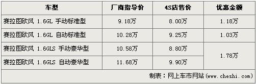 賽拉圖歐風最高降1.78萬元 入門級售8萬