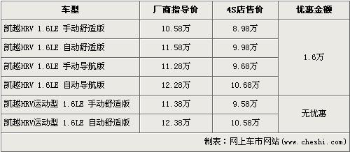 凱越HRV是04年10月上市銷售的,其憑借流暢的外形博得了不少消費(fèi)者的喜愛(ài)。07年10月份,上海通用別克又推出了增加前后包圍套件的運(yùn)動(dòng)版凱越HRV,流暢的外形在前后包圍的裝飾下彰顯運(yùn)動(dòng)。近日根據(jù)網(wǎng)上車市價(jià)格檢測(cè)系統(tǒng)顯示,別克凱越HRV全系已經(jīng)停產(chǎn),并且店內(nèi)在售現(xiàn)車優(yōu)惠1.6萬(wàn)元,具體詳情請(qǐng)看下表: